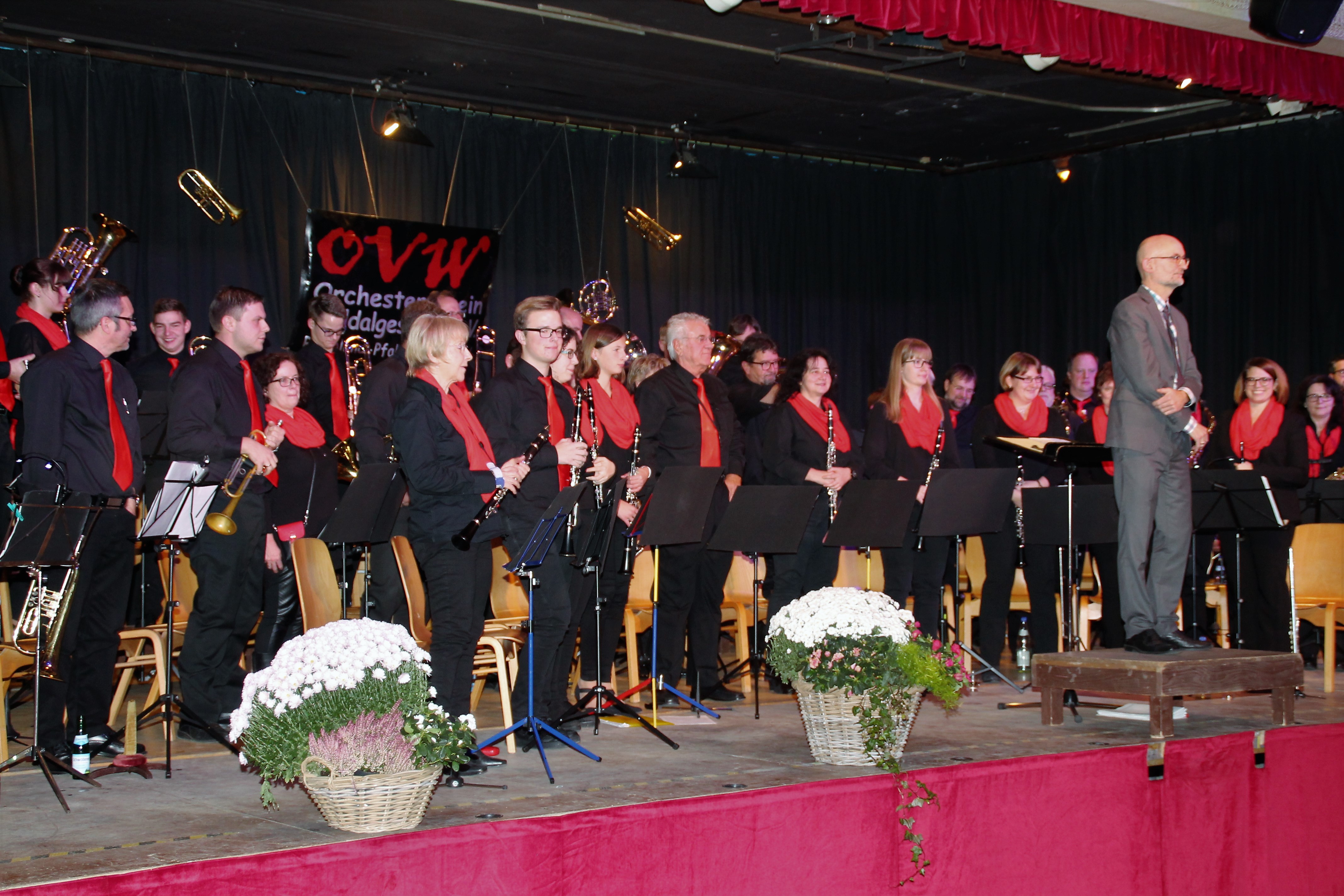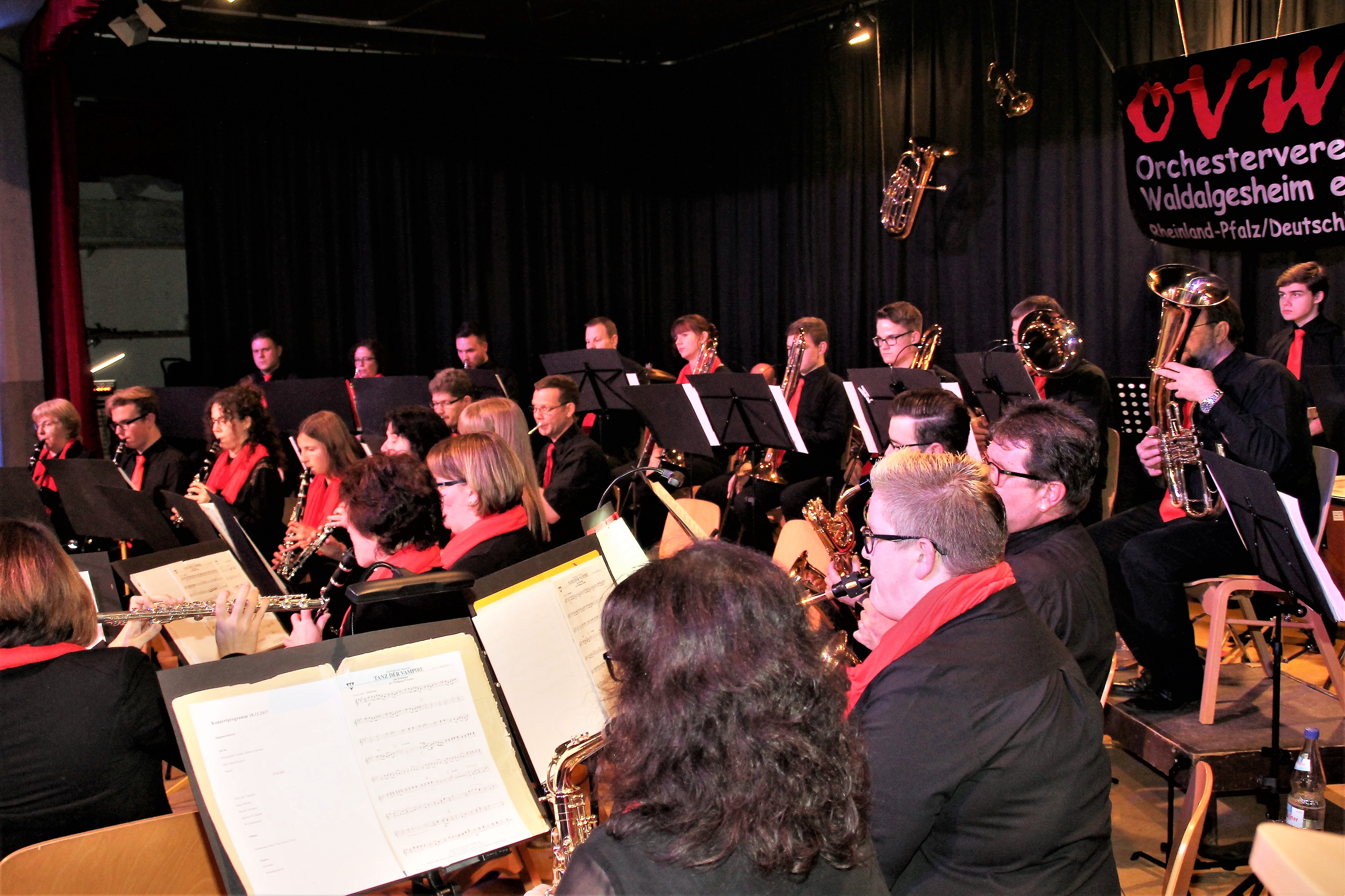 Nachdem die erste Vorsitzende Saskia Burkhardt einige Ehrengäste sowie Ehrenmitglieder des OVW begrüßt, wird das Konzert schwungvoll vom Jugendorchester unter der Leitung von Patricia Reuter eröffnet. Mit Stücken wie “Cups”, in dem ein kleiner Plastikbecher die Hauptrolle spielt, und dem Medley “Meet the Beatles” begeistern die jungen Musiker ihr Publikum. Die Musik aus dem Film “Pirates of the Caribbean” sorgte bei den Zuhörern für Gänsehaut. Nach großem Beifall, einer Zugabe und einer kleinen Umbauphase beginnt dann das Hauptorchester unter der Leitung von Guido Lex mit seinem Eröffnungsstück dem “Florentiner Marsch”, gefolgt vom zweiten Stück dem “Zukunftsgeist” von Johann Gottlieb Paul Brussig. “Music” von John Miles war das letzte Stück vor der Pause. Dieser Klassiker der Rockmusik gilt als John Miles größter Erfolg. Die Ballade erschien erstmals 1976. Die Musik zeichnet sich durch seine starken Kontraste aus. Das Stück beginnt und endet sehr langsam und getragen. Im Mittelteil folgt ein schneller Part im 7/8-Takt, welcher an eine wahrhaftige Rockband erinnert.