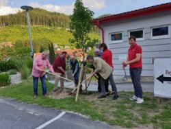 Als Geschenk für die Einladung haben wir Musiker den Rattenern einen Baum geschenkt, einen Amber Baum, denn ein Baum hat – wie wir denken – viele Parallelen zu einer Partnerschaft. Ein Baum steht für Wachstum und Entwicklung. Ein Baum hat seine Wurzeln tief verankert. Mit den Jahren, bei guter Pflege, wächst der Baum und er trotzt allen Witterungen. So wie der Baum jedes Jahr seine Blätter wechselt, so verändern sich auch die Gesichter der Partnerschaft. Aber der Baum – wie auch unsere Partnerschaft – blüht immer wieder auf. Und so wird er immer größer und standfester und ist bestens vorbereitet für die nächsten Jahre und Jahrzehnte. Auch unsere Partnerschaft soll durch gute Pflege immer weiter wachsen, so dass wir, unsere Vereine noch viele schöne und unvergessliche Momente im Rheinland oder der Steiermark erleben können.