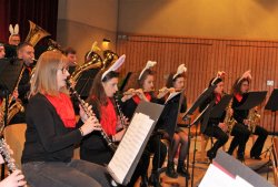 Die Reise führte weiter nach Spanien mit “Blades of Toledo”, einem mitreißenden Paso Doble für drei Posaunen. Informativ und unterhaltsam wurde die Posaune als eines der ältesten, voll chromatisch spielbaren Orchesterinstrumente vorgestellt, bevor Marvin Eckes, Leander Gohres und Claudia Domehl die Bühne mit ihrer Solo-Darbietung eroberten.