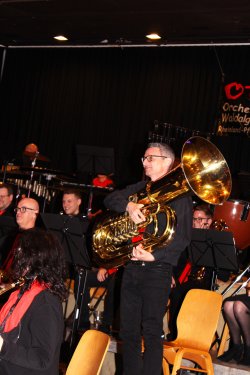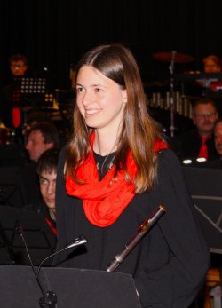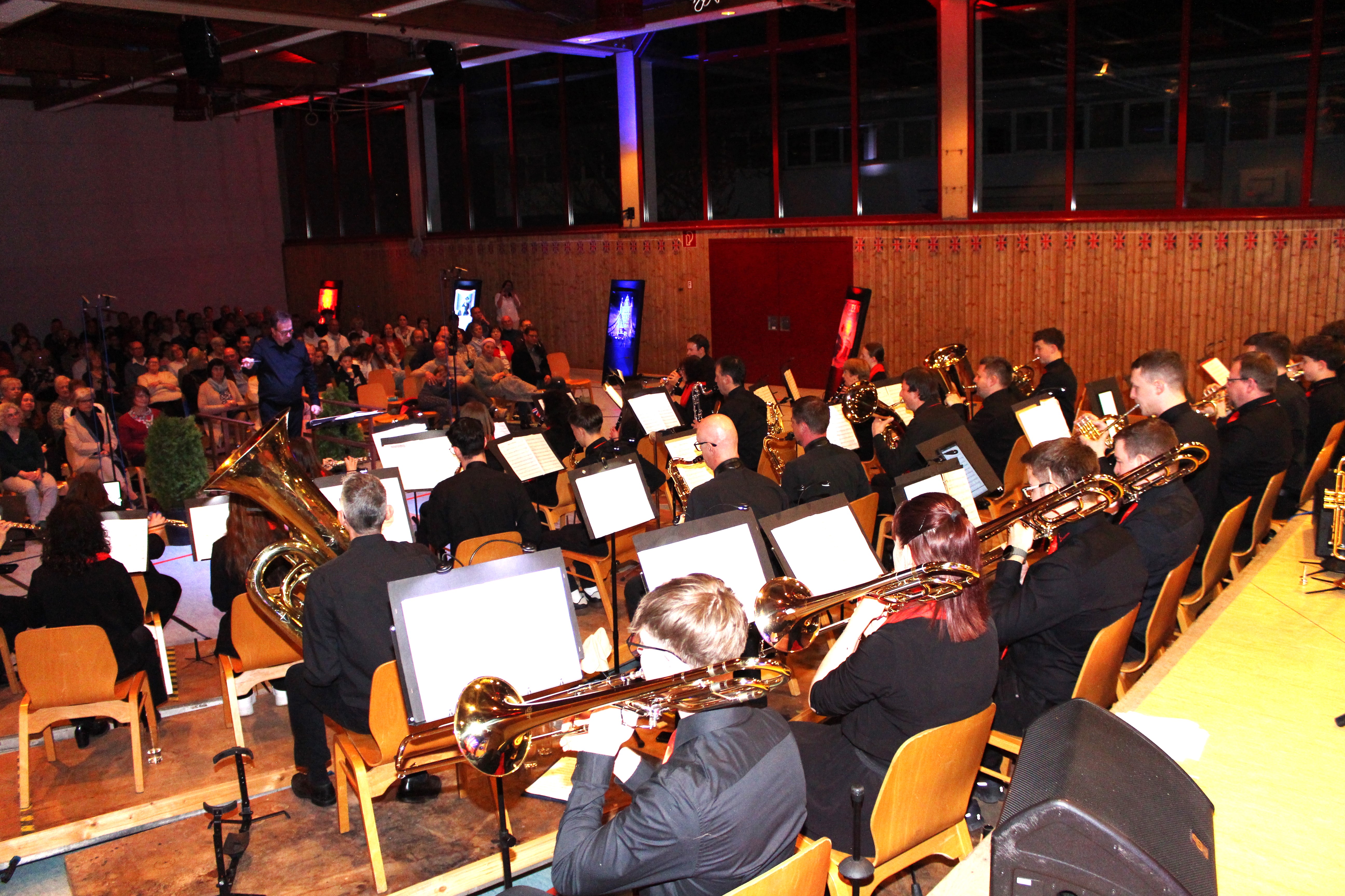 Vor der Begrüßung durch die 1. Vorsitzende Claudia Domehl wurde das Konzert feierlich mit dem „Earl of Oxford’s March“, vorgetragen allein vom Blech- und Schlagwerkregister, eröffnet.
