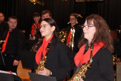Die Reise führte weiter nach Spanien mit “Blades of Toledo”, einem mitreißenden Paso Doble für drei Posaunen. Informativ und unterhaltsam wurde die Posaune als eines der ältesten, voll chromatisch spielbaren Orchesterinstrumente vorgestellt, bevor Marvin Eckes, Leander Gohres und Claudia Domehl die Bühne mit ihrer Solo-Darbietung eroberten.