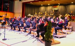 Die Stimmung wechselte dann in eine dramatische Atmosphäre mit der musikalischen Darstellung des U-Bootes U96 in “Das Boot”. Die von Walter Ratzek arrangierte Version für Blasorchester zog die Zuhörer mit Pauken, Trompeten und Hörnersignalen in die spannende Welt der U-Boot-Besatzung. Trotz der Verbindung zum Film über den Zweiten Weltkrieg, endete die Filmmusik überraschend positiv.